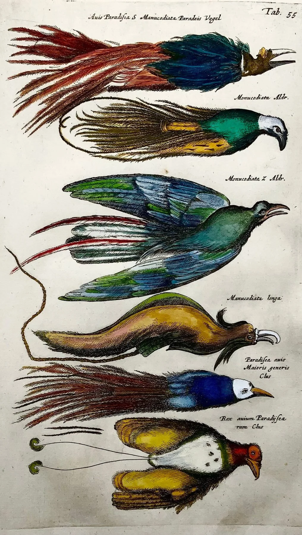 The present engraving was printed from a copperplate and subsequently hand-colored, likely in a contemporary workshop, enhancing the visual differentiation of species and increasing the print’s appeal as both a scientific image and a luxury object. Hand-colored examples from Jonston’s Historia Naturalis are especially desirable, as each impression is unique and reflects early modern practices of bespoke coloring.